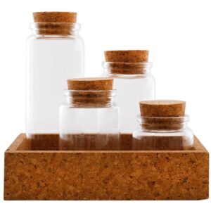 Cork Tray With Four Glass Bottles & Lids