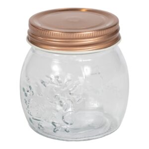 Kitchen Glass Embossed Storage Jar With Copper Screw Lid – Small