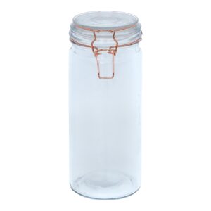 Kitchen Glass Embossed Storage Jar With Copper Screw Lid – Large