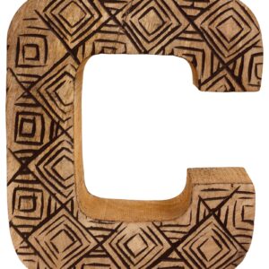 Hand Carved Wooden Geometric Letter C