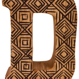 Hand Carved Wooden Geometric Letter D