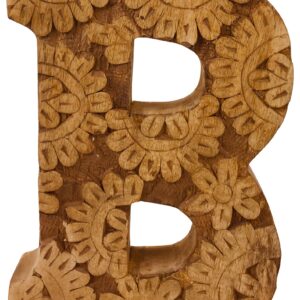 Hand Carved Wooden Flower Letter B