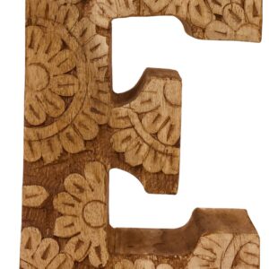 Hand Carved Wooden Flower Letter E