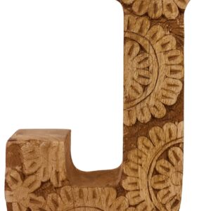 Hand Carved Wooden Flower Letter J