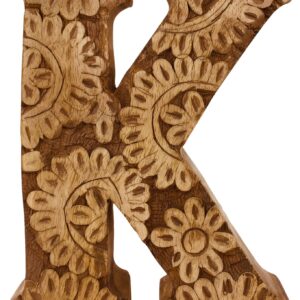 Hand Carved Wooden Flower Letter K