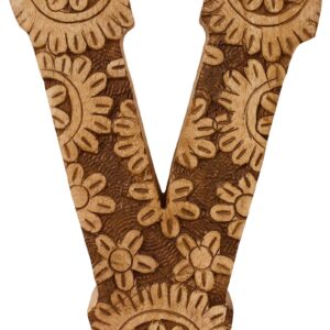 Hand Carved Wooden Flower Letter V