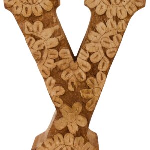 Hand Carved Wooden Flower Letter Y