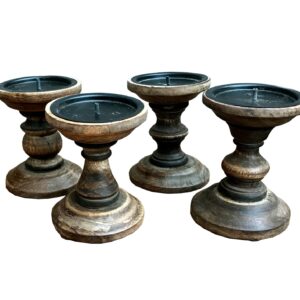 Set of 4 Brown Wooden Candlestick Church Pillar Candle Holders