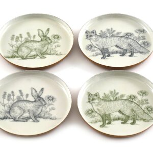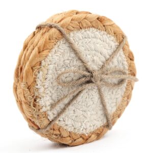 Set Of 6 Round Bamboo Coasters With Holder 12cm