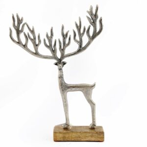 Silver Metal Deer On Wood Base