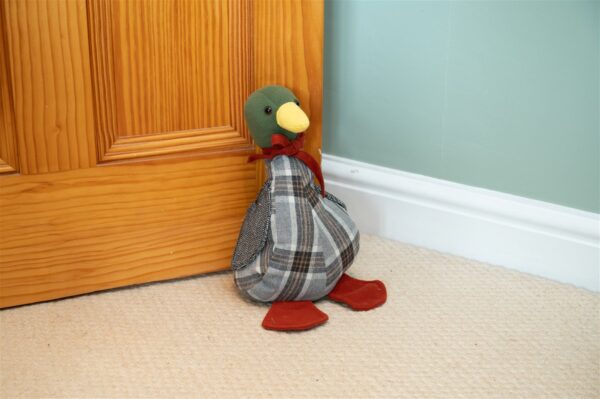 This attractive duck doorstop is perfect for any animal loving home. The contrasting fabrics makes this item eye catching, but remains functional for any home. The doorstop is supplied pre filled and ready for use. The duck doorstop has fabric body, wings and beak and felt feet and head. Body to neck measures 22cm with the body depth being16cm, and is filled with 60% polyester and 40% sand. Measurements: D21 x H32 x W20cm SKU: TX0923