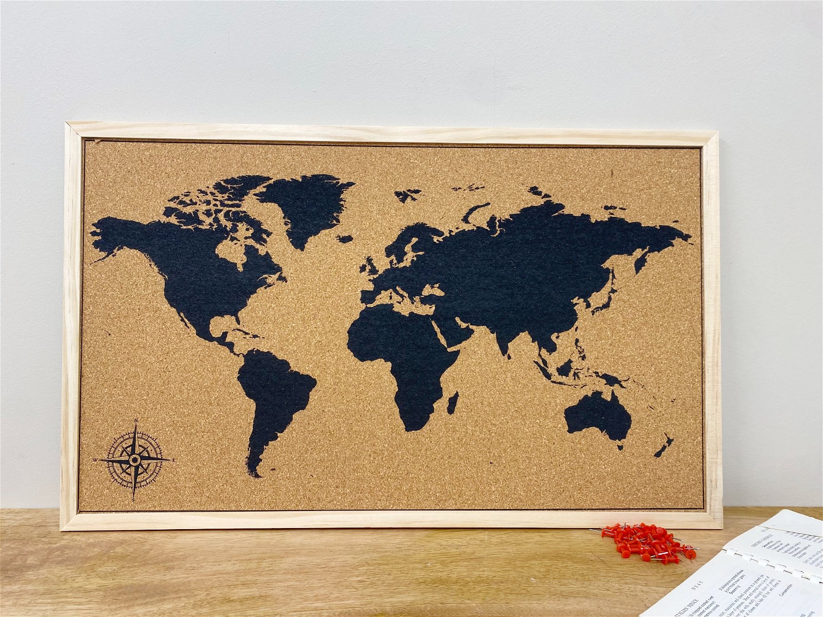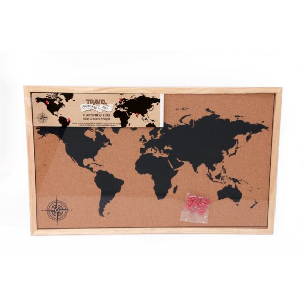 Perfect item for those who love to travel, this cork board features a map