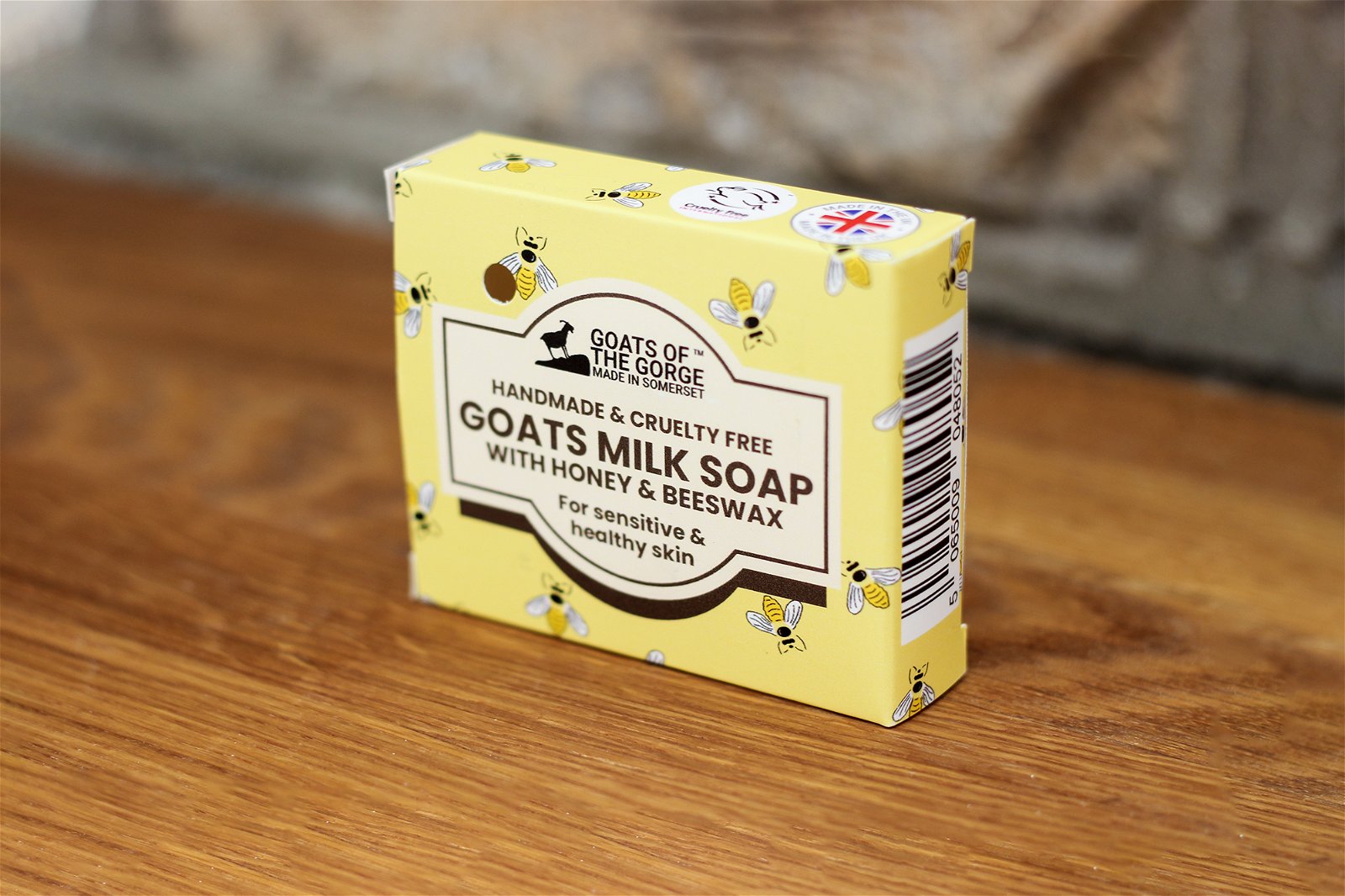 Goats Milk Soap with Bees Wax and Local Honey! The honey creates a lather giving you a nice bubbly soap bar and also helps kill bacteria that may cause acne. Shaped as a honeycomb with a little bee. Also in a creamy colour. Ingredients: Contains Goats Milk, Coconut Oil, Pomace Oil and Shea Butter. Beeswax, Honey. Best Before: 10 Years from manufacture Measurements: D7.2 x H0.19 x W2cm