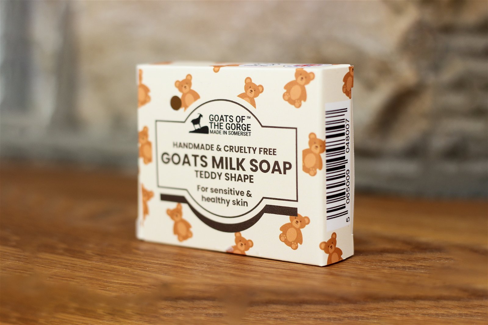 Goats milk contains many beneficial nutrients including vitamin A which helps to break down dead skin cells. When blended with natural oils it helps moisturise and rejuvenate the skin and also helps to maintain healthy skin. An attractive novelty teddy bear soap bar, brilliant for bath times! Ingredients: Contains Goats Milk, Coconut Oil, Pomace Oil and Shea Butter. Best Before: 10 Years from manufacture Measurements: D8 x H0.18 x W1.5cm