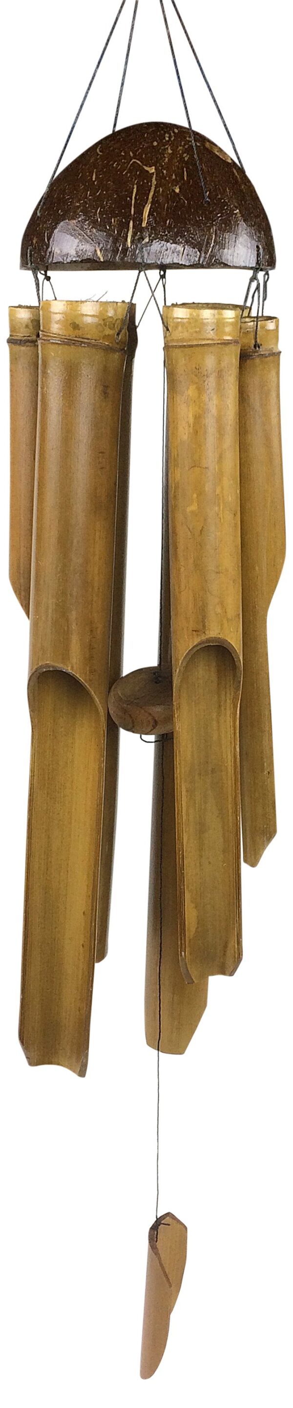 Wooden half coconut on top of wind chimes, perfect for any garden scenery. A simplistic yet charming design. Measurements (W x D x H): 14cm x 14cm x 60cm.