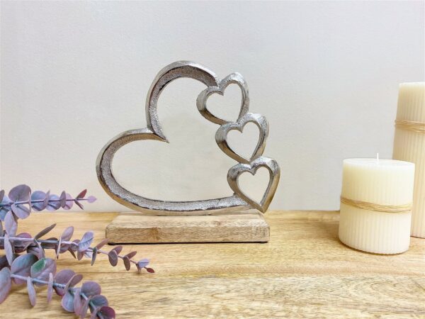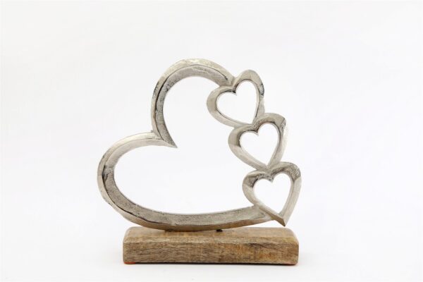 The silver heart ornament is mounted on an attractive mango wood base, and stylishly embellished giving it a lovely shabby chic feel. A truly beautiful home accessory that will blend well with a range of interiors. Measurements: D5 x H19.5 x W21cm