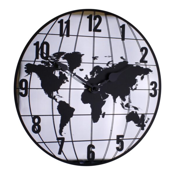 The clock face is made of glass with a black design, Clock requires 1 x AA battery (battery not included). Measurements: 3 x 30 x 30cm SKU: TR0063