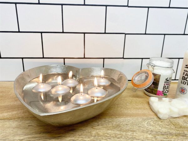 These are popular for use indoors in a bowl of water or outdoors in a pond or swimming pool, for weddings, celebrations or simply to calm the mood. A stylish decoration and interesting alternative to standard candles. Perfect for creating a warm and inviting atmosphere. Each candle is 4.5cm diameter and 3cm deep: the wick is 1.5cm. Measurements: D12 x H3.4 x W17cm