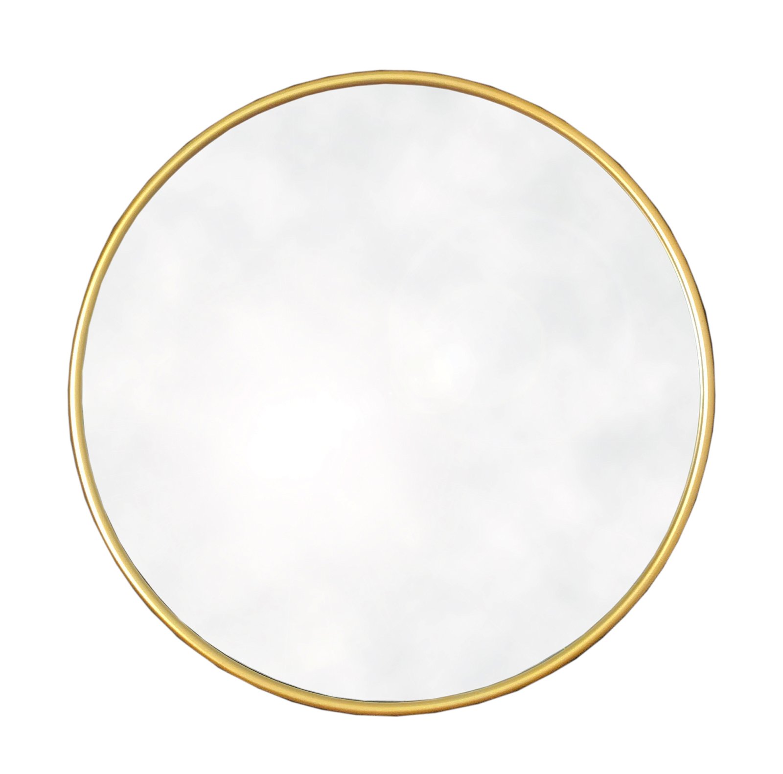 A simple circular mirror with a thin gold border around the edge. The mirror is comprised out of glass with a high quality robust plastic. Measurements: 50 x 1 x 50cm SKU: MI0844