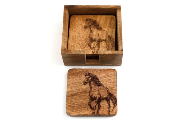Be the first to review “Set Of Four Wooden Engraved Horse Coasters”