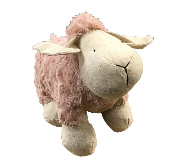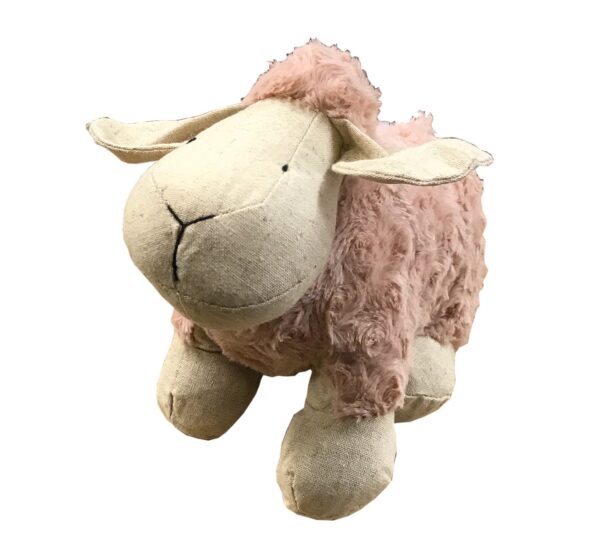 A pink sheep doorstop with a soft fabric fur across the exterior. This sheep door stop would look at home holding open any door with its practical yet stylish design. Material breakdown: 55% Polyester + 15%Sand + 30%Cotton. Measurements: 25 x 15 x 20cm SKU: TX1163