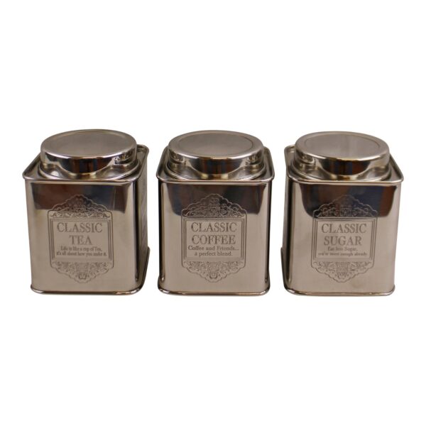 We love this set of Tea, Coffee & Sugar Storage Tins, they have a classic design in a silver colour and feature quotes such as “Coffee & Friends… a perfect blend” & “Eat less Sugar, you’re sweet enough already”. Made of 100% steel, the lids have a rubber seal to keep the contents fresh. Measurements: 10 x 12 x 30cm SKU: KG0269