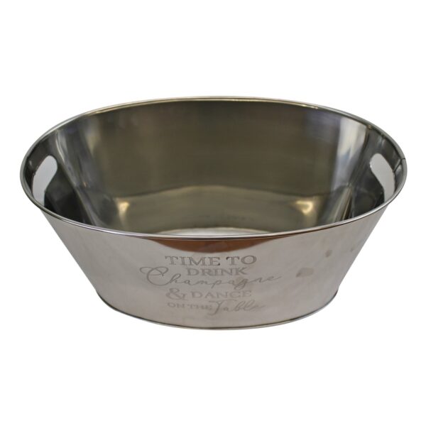 Serve your sparkling fizz in style with this stylish champagne bucket featuring the quote ‘Time to drink champagne & dance on the table’. Made of 100% stainless steel. Measurements: 24 x 20 x 40cm SKU: KG0772