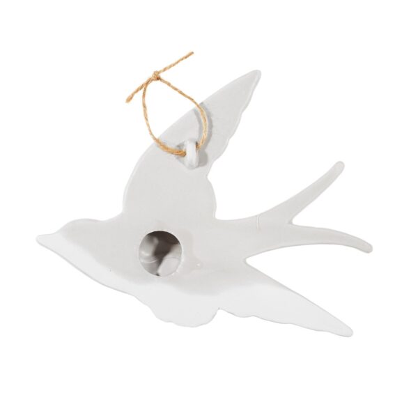 This lovely set of three flying birds are great for adding a touch of interests to living spaces. The decoration comes in three pieces as a small, medium and large bird. On the reverse of each one there is a simple hook so that it can be easily affixed to a wall or even piece of furniture. This product comes in a lovely package also, with floral print backing paper. Twine used for hanging in the image is not included. Measurements: D1 x H13 x W18cm